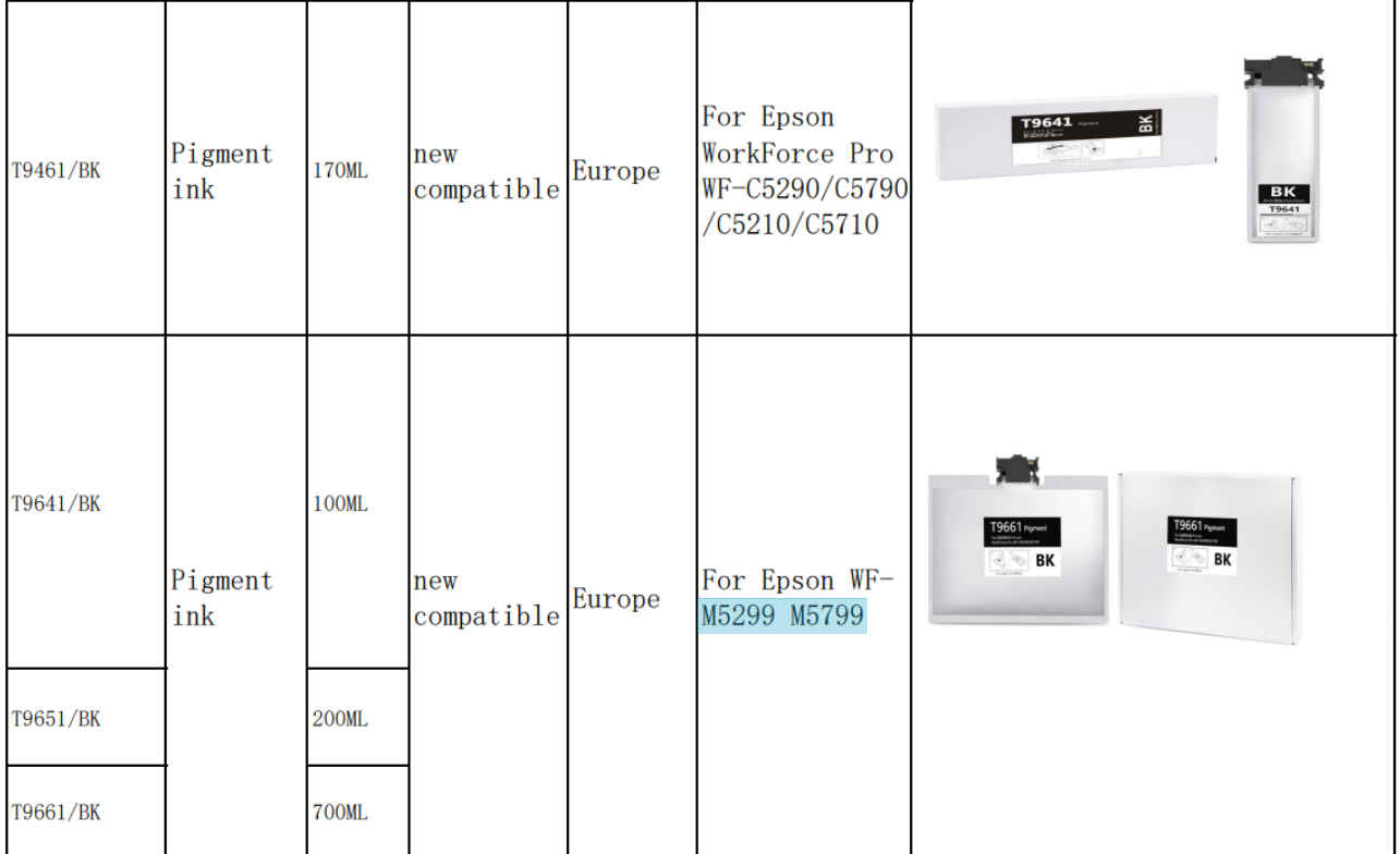 T9641-9661 For Epson WorkForce ProWF-C5290/C5790/C5210/C5710 M5299 M5799